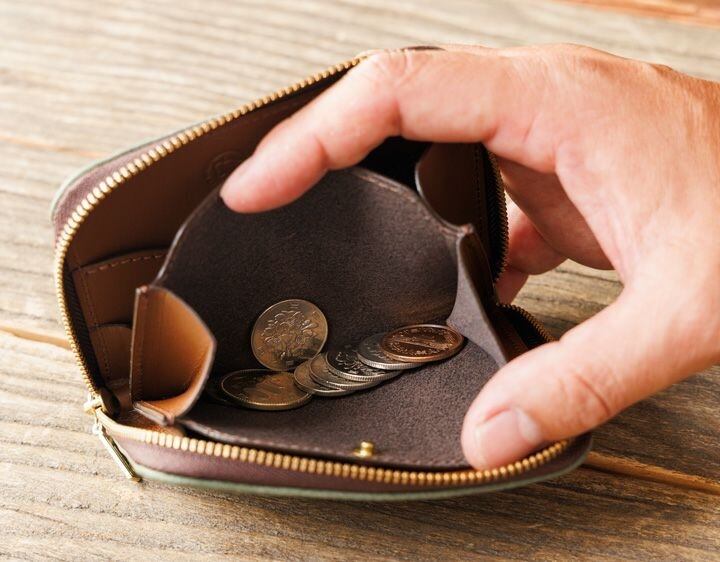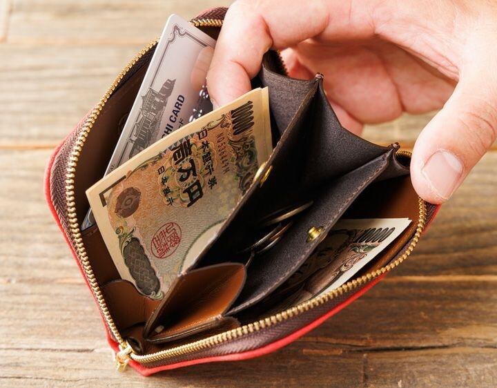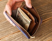 コンパクトながらしっかり収納できるラウンドファスナー付き二つ折り財布
