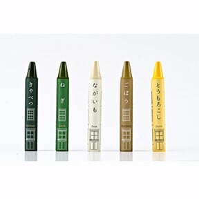 クレヨンには「緑色」や「黄色」ではなく「きゃべつ」や「にんじん」など、配合された野菜の名前が付けられています。